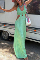 Transform into a vision of elegance with our Halter V Neck Cut Out Printed Maxi Dress. The stunning halter neckline and strategic cut outs will beautifully accentuate your figure, while the bold print adds a touch of playful sophistication. Elevate your style and confidence with this must-have dress!