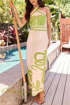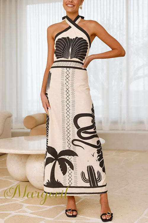 Margovil Palm Canyon Print Criss Cross Halter Maxi Dress