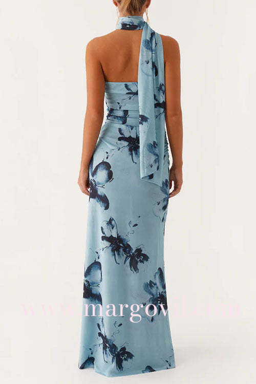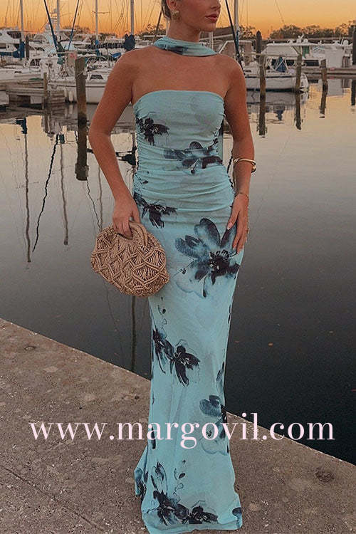 Margovil Strapless Tube Floral Print Bodycon Maxi Dress