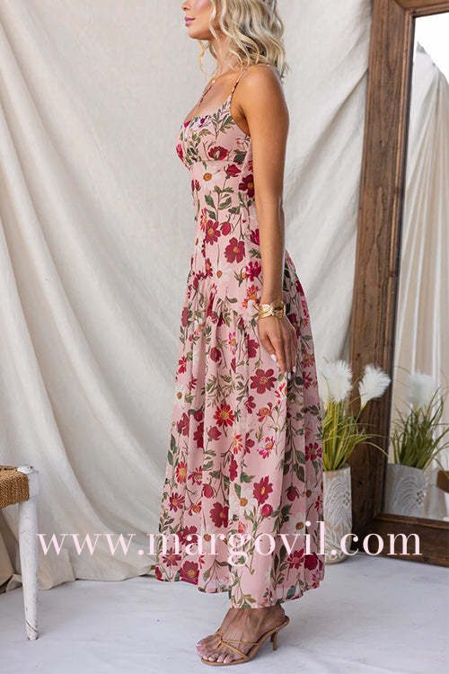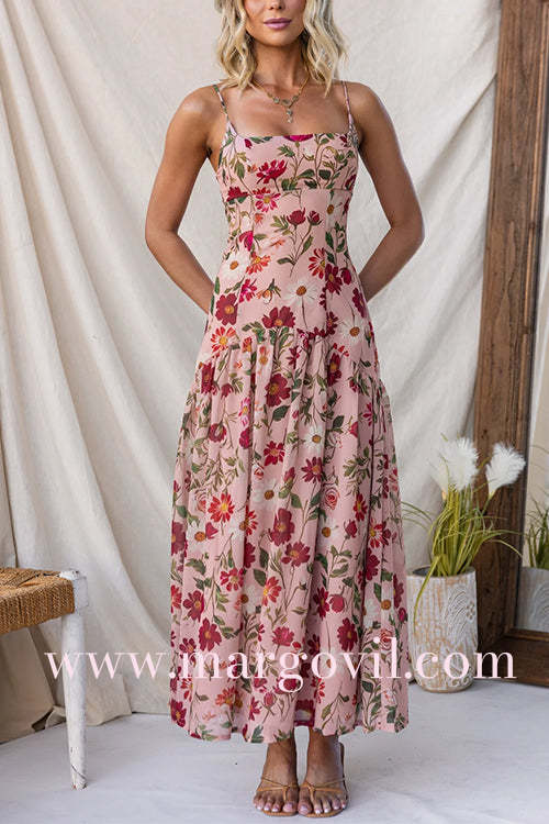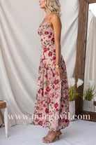 Spaghetti Strap Drop Waist Floral Print Maxi Dress