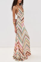 Step into vibrant elegance with the V Neck Open Back Colorful Print Maxi Dress. Its bold, eye-catching print combined with a flattering V-neckline and daring open back creates a perfect balance of sophistication and allure. Designed for comfort and style, this maxi dress flows beautifully, making it ideal for summer parties, beach outings, or special occasions. Embrace your bold side and make a lasting impression wherever you go.