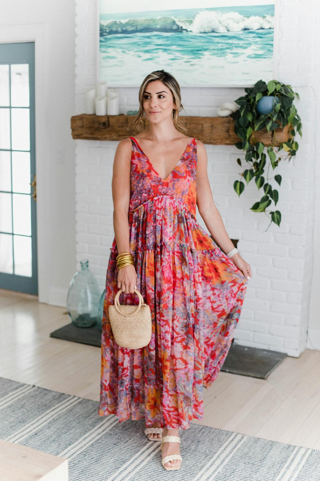 Unleash your inner free spirit with our V Neck Sleeveless Floral Print Swing Maxi Vacation Dress. The deep V neckline and airy sleeveless design exude effortless elegance, while the vibrant floral print adds a touch of bohemian charm. Perfect for any vacation, this dress will have you feeling carefree and beautiful.