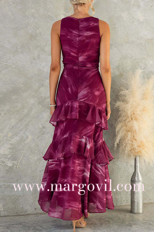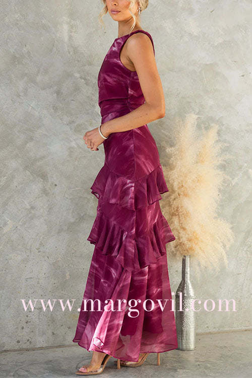 Sleeveless Ruffle Hem Tie Dye Maxi Dress