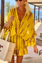 V Neck Batwing Ruffle Sleeves Tie Dye Mini Dress