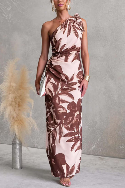 Tie Knot One Shoulder Sleeveless Floral Print Maxi Dress