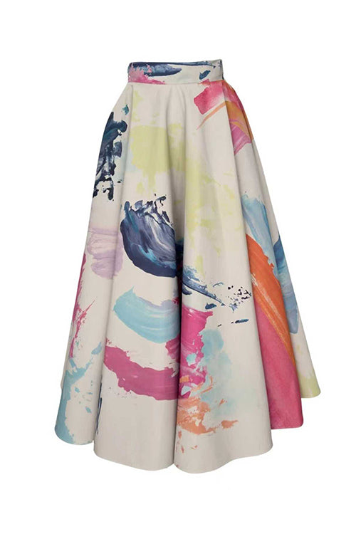 High Rise Pocketed Picasso Canvas Maxi Skirt