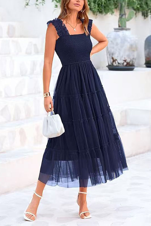 Square Neck Sleeveless Ruffle Tiered Midi Dress