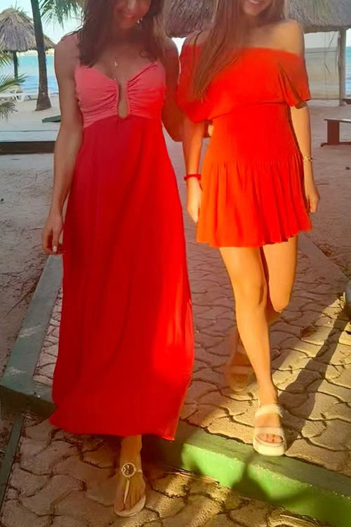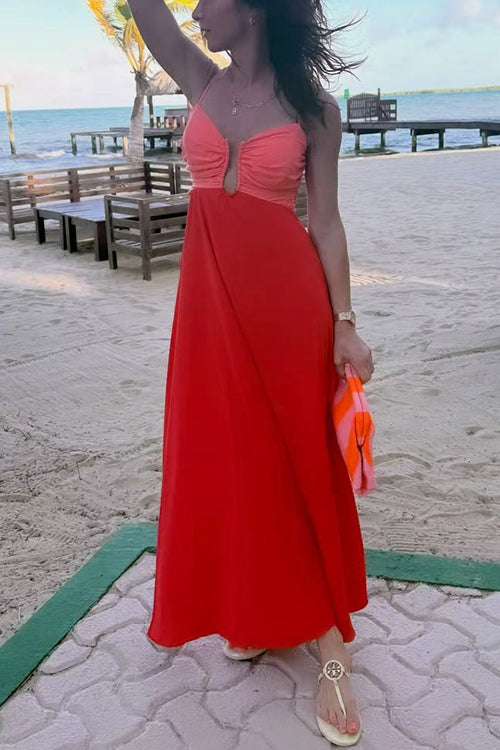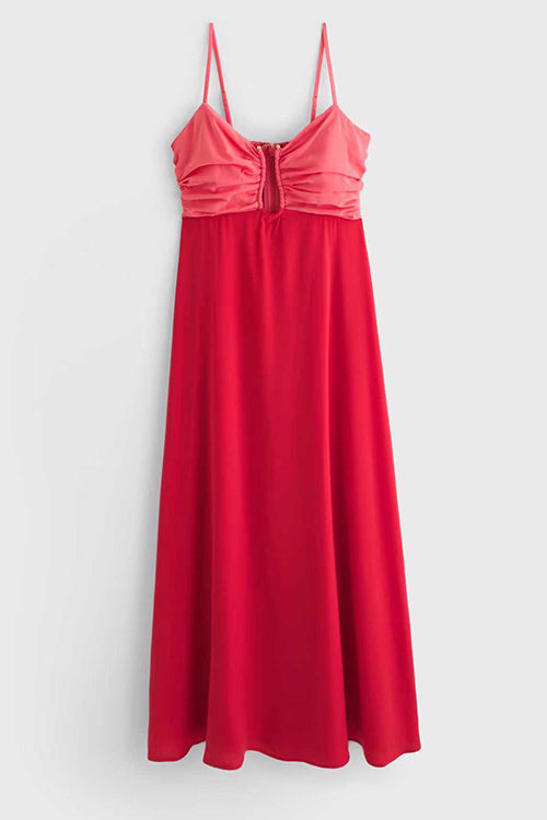 Spaghetti Strap Color Block Zipper Back Maxi Dress