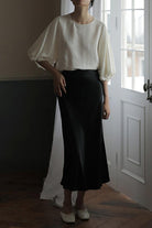 Margovil High Waist Comfy Satin Midi Skirt