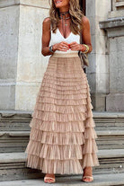 Margovil Ruffle Layered Mesh A-line Long Tulle Skirt