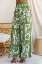 Elastic Waist Floral Print Pocketed Wide Leg Pants