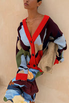 Margovil V Neck Button Up Abstract Print Sweater Cardigan