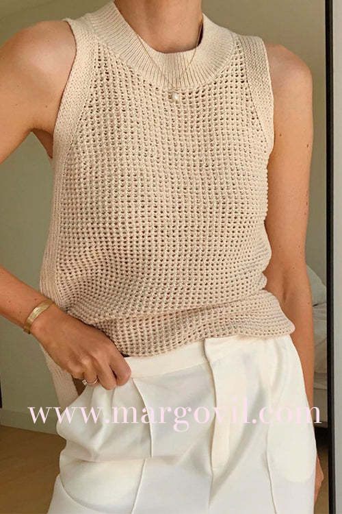 Stay cool and stylish with our Margovil Crewneck Hollow Out Sleeveless Top. Featuring a chic crewneck design and a trendy hollow-out pattern, this top is the perfect addition to your wardrobe. Its sleeveless design allows you to stay cool while still looking effortlessly fashionable. Upgrade your look and beat the heat with our Margovil top.