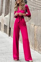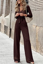 Margovil Wrap V Neck Long Sleeve Tie Waist Jumpsuits(3 Colors Available)