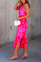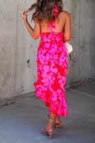 Margovil Cross Halter Backless Printed Irregular Ruffle Dress