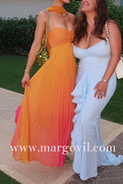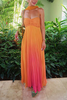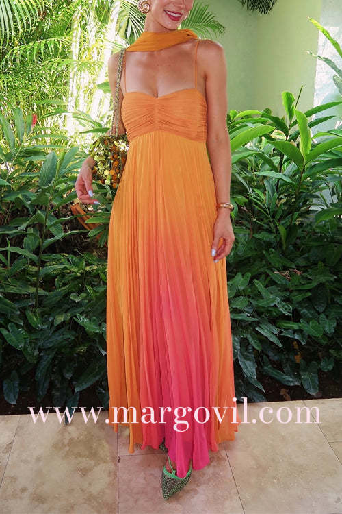 Elevate your style with this Ruched Back Lace-up Gradient Pleated Maxi Cami Dress. Featuring a flattering ruched back and adjustable lace-up detail, it offers a perfect fit and elegant silhouette. The gradient pleated fabric adds a dynamic, flowing effect that moves beautifully with you. Ideal for special occasions or a chic evening out, this maxi dress combines comfort and sophistication effortlessly.