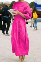 Margovil Lantern Sleeve Ruched Midi Cotton Linen Dress
