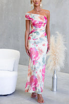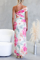 One Shoulder Floral Print Ruched Bodycon Maxi Dress