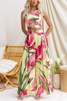 Sleeveless Crop Top and Wide Leg Pants Printed Set