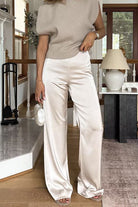Discover the perfect blend of comfort and style with the Margovil High Rise Straight Leg Satin Pants. These pants feature a flattering high-rise fit that enhances your waist and a straight leg cut for a timeless silhouette. The silky satin fabric adds a subtle sheen, elevating your look instantly. Ideal for dressing up or down, they provide effortless sophistication for any occasion. Embrace elegance and confidence in a pair of pants designed to make a statement.