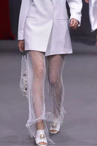 Margovil Rhinestone Hollow Out Fishnet Slit Pants