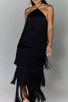Margovil Chicest Halter Ruffle Layered Fringe Maxi Party Dress
