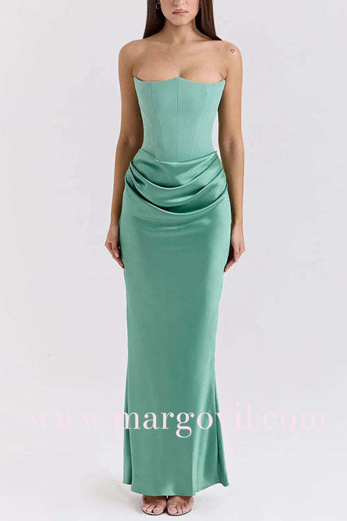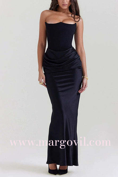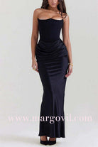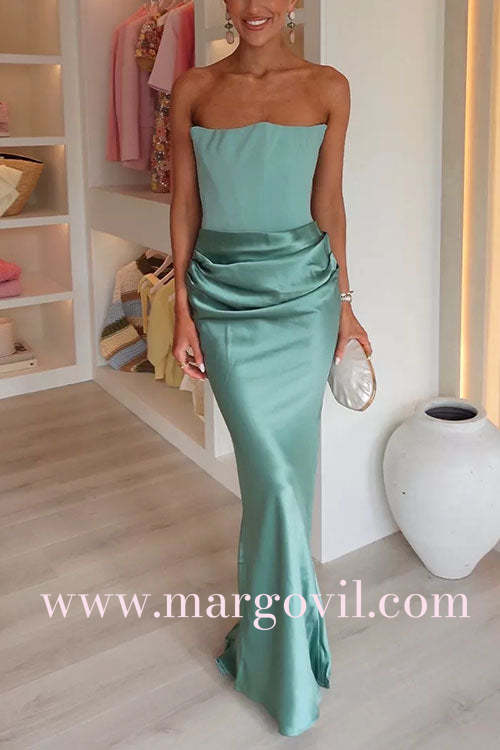 Margovil Strapless Ruched Satin Splice Bodycon Maxi Dress(in 5 Colors!)