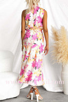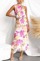 Experience beauty and comfort in our Margovil Mockneck Sleeveless Floral Print Satin Maxi Dress. With a stylish mockneck and flowy floral print, this dress is perfect for any occasion. Stay chic and comfortable all day long!