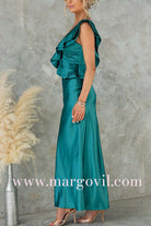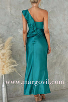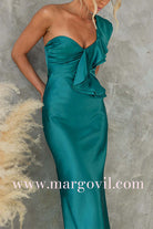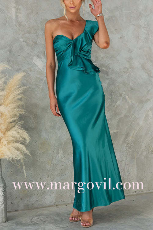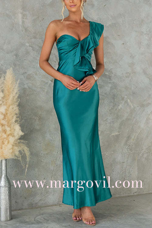 Ruffle One Shoulder Sleeveless Maxi Satin Dress