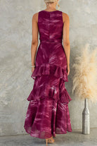 Sleeveless Ruffle Hem Tie Dye Maxi Dress