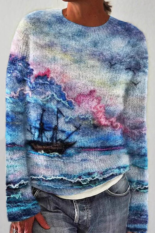 Margovil O Neck Long Sleeves Graphic Casual Sweater(in 3 Patterns)