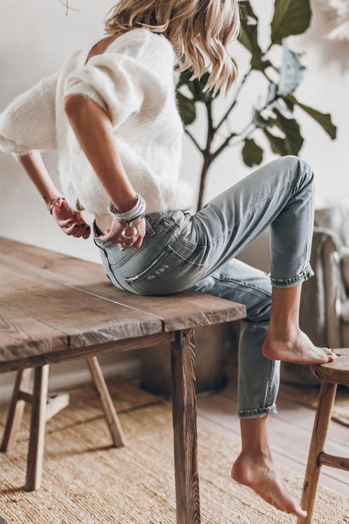 Long Sleeves Twist Back Pure Fuzzy Sweater