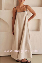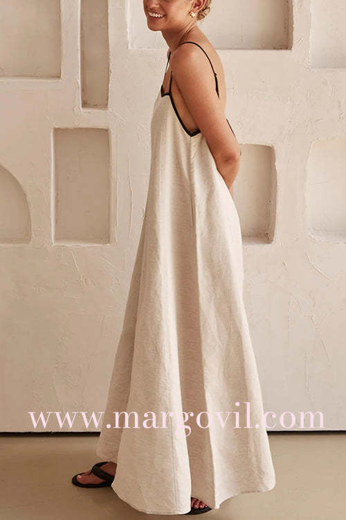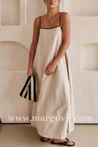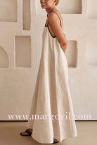 Margovil Adjustable Strap Backless Cotton Linen Maxi Dress