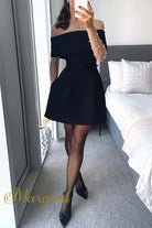• Get ready to turn heads and feel confident in our Margovil Off Shoulder Waisted A-line Mini Dress! With its flattering off-shoulder design and cinched waist, this dress accentuates your curves and adds a touch of elegance to any occasion. Complete your wardrobe with this must-have piece!