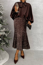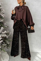 Make a statement with this elegant satin top featuring a refined bow neckline and dramatic batwing sleeves. The luxurious fabric drapes gracefully, creating a sophisticated silhouette that flatters every figure. Whether you're heading to the office, a dinner date, or weekend brunch, this versatile piece effortlessly transitions from day to night. The delicate bow detail adds personality without overwhelming your look, while the flowing sleeves provide movement and comfort. Designed for the modern woman who refuses to compromise on style, this top is the investment piece your closet has been waiting for.