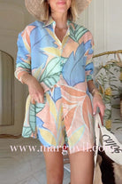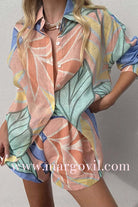 Margovil Unique Print Long Sleeves Button Up Shirt and Pocketed Shorts Linen Set