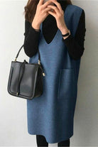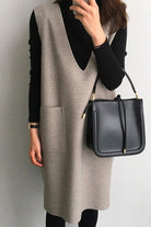 Margovil V Neck Sleeveless Woolen Vest Pocketed Dress (6 colors Available)