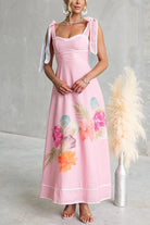 Bow Shoulder Sleeveless Floral Print Swing Maxi Dress