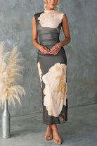 Mockneck Sleeveless Floral Print Bodycon Maxi Dress