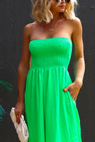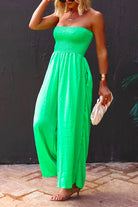 Margovil Strapless Smocked Pocketed Wide Leg Jumpsuit
