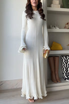 Elevate your style with the Margovil Maxi Dress! Featuring bell sleeves and a back lace-up design, this dress exudes effortless charm. The ruffle trim adds a touch of femininity, making it perfect for any occasion. Comfortable and chic, this dress is a must-have in your wardrobe!