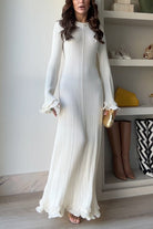 Margovil Bell Sleeves Back Lace-up Ruffle Trim Maxi Dress