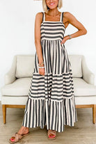 Sleeveless High Waist Striped Maxi Swing Dress