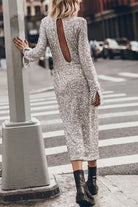 Margovil Long Sleeves Back Cut Out Sequin Midi Dress