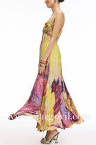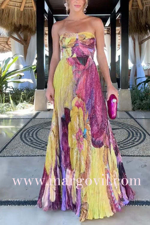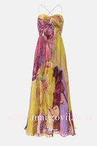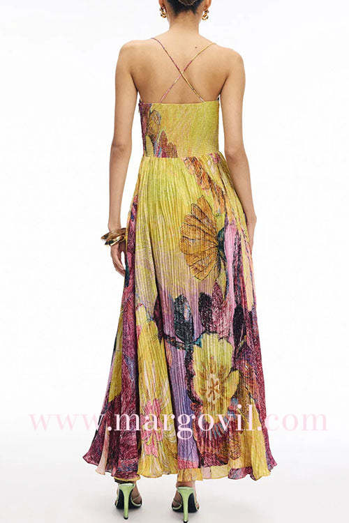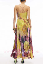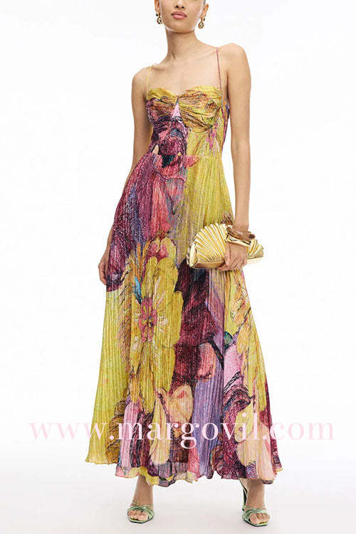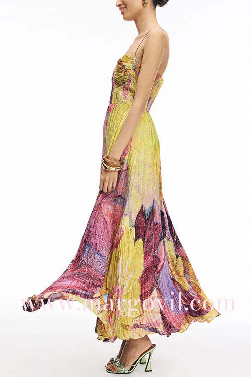 Spaghetti Strap Waisted Floral Print Swing Maxi Dress
