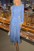 Sparkle all night in this glamorous midi dress! Featuring a long sleeve sequin bodice, this dress is just the thing for your next special occasion. With its dazzling style and elegant design, you'll be sure to make a lasting impression.