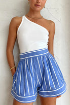 Margovil Striped Long Sleeves Curve Hem Shirt and High Rise Shorts Set