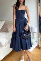 Margovil Spaghetti Strap Pocketed Corset Swing Midi Dress