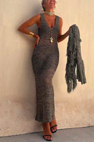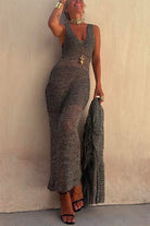 V Neck Hollow Out Sleeveless Maxi Sweater Dress