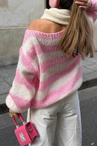 Margovil Drop Shoulder Striped Casual Pullover Sweater